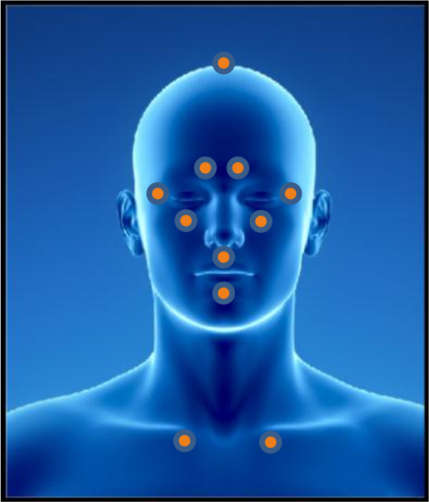 V druhej fáze aplikujeme EFT techniku a to tzv. tappingom ( jemným poťukávaním ) po presných bodoch na vašej tvári a ruke (vid obrázky nižšie ), kde sa nachádzajú meridiány prepojené s emocionálnym, mentálnym a fyzickým telom